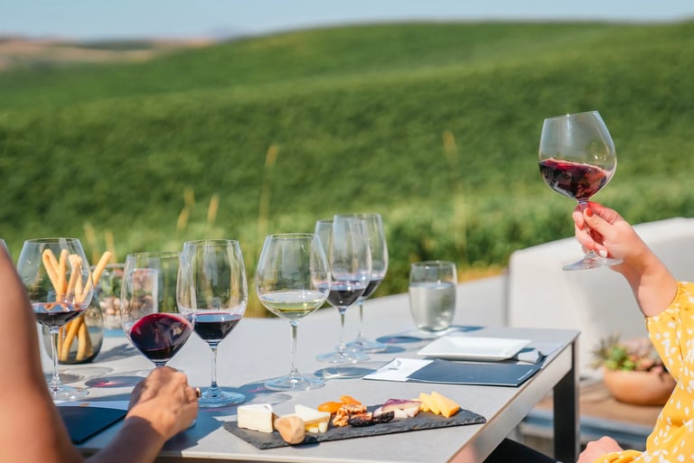 Between tastings, you’ll enjoy small local bites that pair perfectly with the wines, all while taking in peaceful views of the vineyard and surrounding countryside. The atmosphere is intimate, relaxing, and ideal for couples, groups of friends, or anyone seeking a calming break from the city.